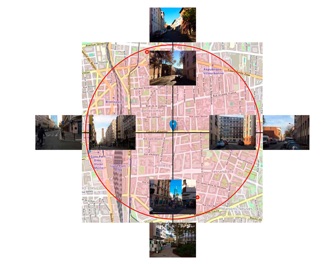 Demande a été faite à qui voulait de se positionner physiquement sur la ligne de frontière du 1 KM, le plus exactement possible et ceci aux quatre points cardinaux. Là, il fallait prendre deux photos dans l’axe du rayon : l’une vers le centre autorisé, l’autre vers l’extérieur interdit.